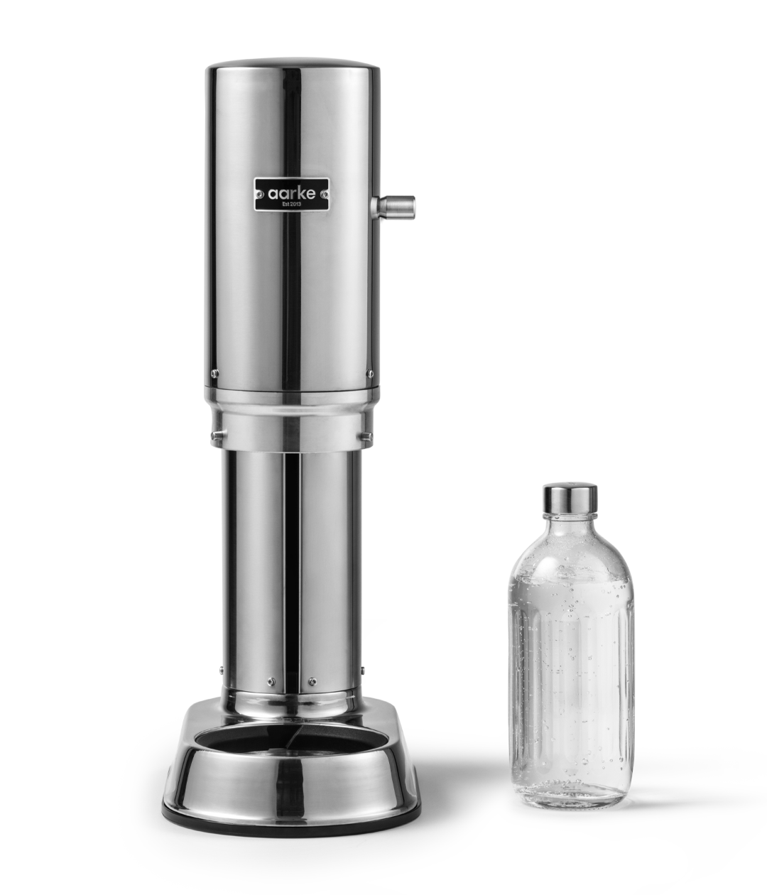 One compatible Aarke Glass Bottle Pro is included in the box. Gas cylinder not included.