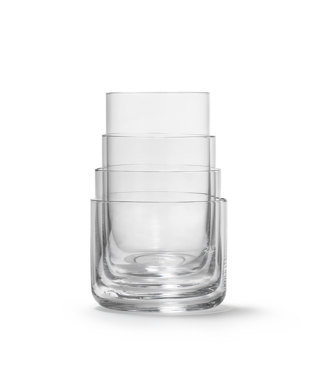 Our thin drinking glasses are brilliantly engineered and made of crystal glass. They come in four different shapes, creating a playful design concept with both unity and individuality. This also means that they’re not your average stacking glasses. Instead, you nest them inside each other to minimise storage.