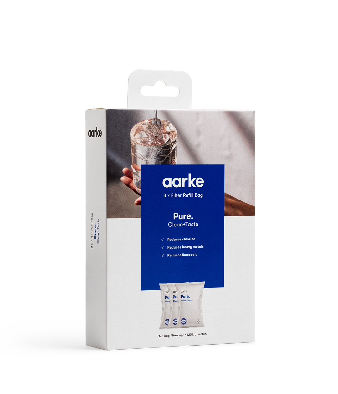 Choose between Pure and Enriched filter refill granules for your Aarke Purifier. Sold in a 3-pack of refill bags. One bag is enough to filter 120 litres of water.